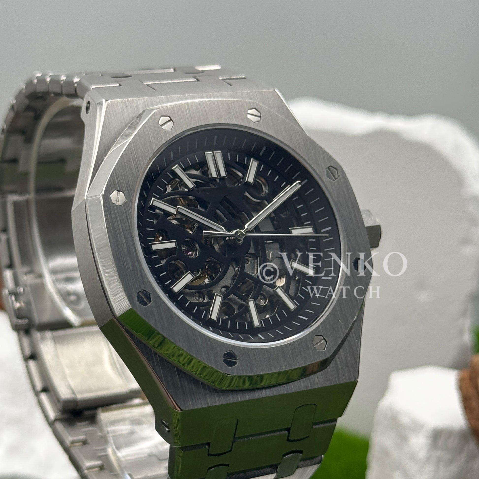 Inspiriert vom ikonischen Royal Oak Design und ausgestattet mit dem renommierten automatischen Seiko NH70 Uhrwerk präsentieren wir die Seiko Mod Royal Oak. Eine 41 mm hochwertige Uhr, die Exzellenz und Erschwinglichkeit perfekt vereint.